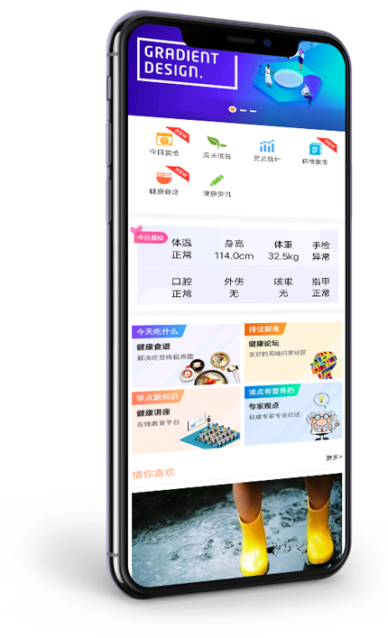 • 由晨檢機(jī)器人檢查后發(fā)出的寶寶每天身體特征信息,查看寶寶成長曲線